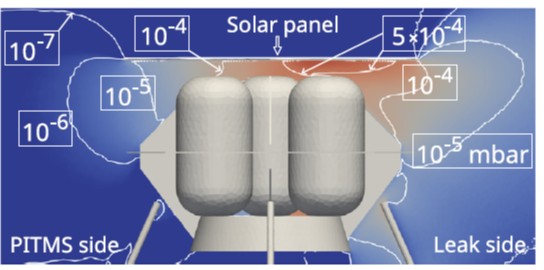 Fig. 2: Direct Simulation Monte Carlo (DSMC) Models of a Lunar Lander Gas Leak